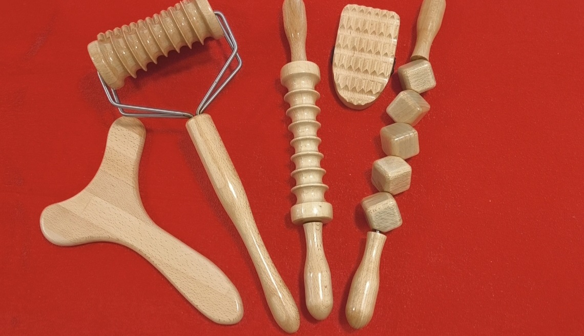 V našem masážním salonu používáme kvalitní dřevěné nástroje, až z daleké Kolumbie. Jejich povrch je speciálně upravený, aby nedošlo k poranění pokožky a lépe se nástroje dezinfikovaly. Díky speciální úpravě povrchu také nedochází k ukládání bakterií a plísní do sporu dřeva jako je to u jiných méně kvalitních nástrojů na Maderoterapii.